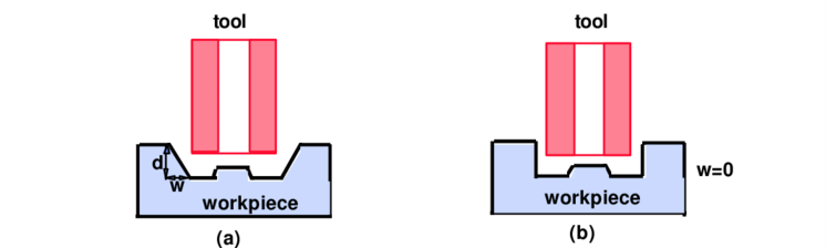 In the final position, the shape of the tool remains the same as when it started, which is one of the major advantages of the ECM process.